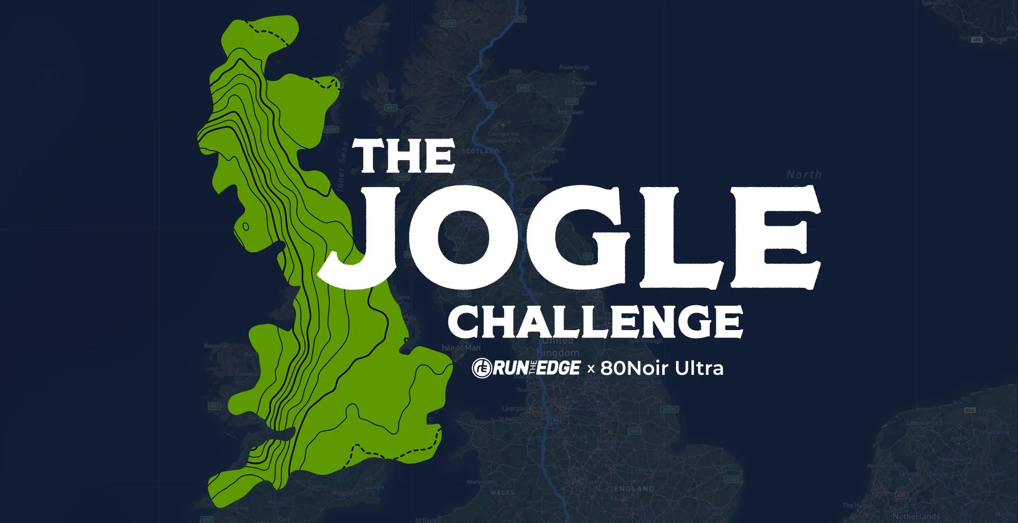 The JOGLE Challenge, organized by Run The Edge, is a virtual fitness event where participants undertake the journey of running or walking 853.5 miles, following the iconic JOGLE route from the northern tip to the southern tip of Great Britain. Partnering with 80Noir, a UK chocolate company, Run The Edge donated the proceeds of the JOGLE challenge to mental health charities. For the branding, I aimed to evoke an old-world charm that pays homage to the challenge's UK roots. Hand-drawn illustrations highlight significant landmarks along the JOGLE route. It was a unique opportunity to blend elements of fitness, chocolate, and travel, reflected in the icons of fitness gear, cocoa beans, and topographic maps.